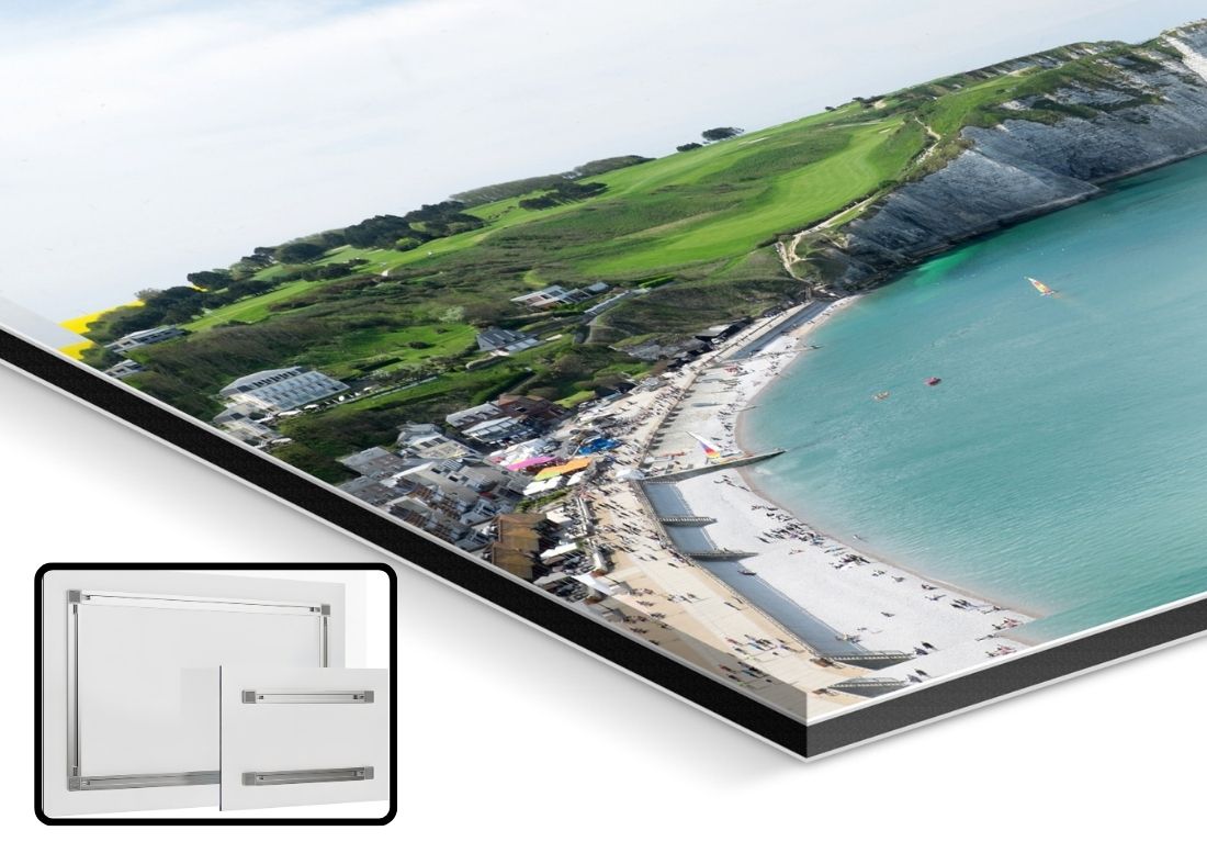The image is printed on "Crystal Archive Professional Maxima" paper developed by Fujifilm and laminated onto a 3 mm thick Alu-Dibond backing board - consisting of two coated aluminum plates with a polyethylene core. Above this is a 2 mm thick acrylic glass. Acrylic glass is lightweight, shatterproof and insensitive to temperature fluctuations.