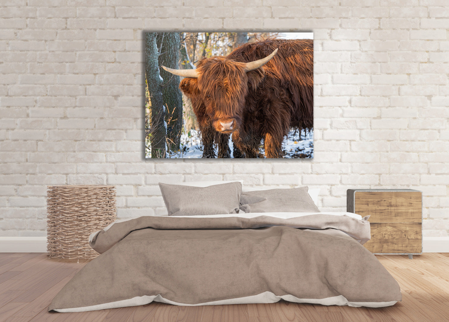 The fine, smoothly woven fabric has a subtly textured, glossy surface. The fabric texture gives the picture a natural and lively appearance. The woven fabric is stretched on a high-quality support frame.