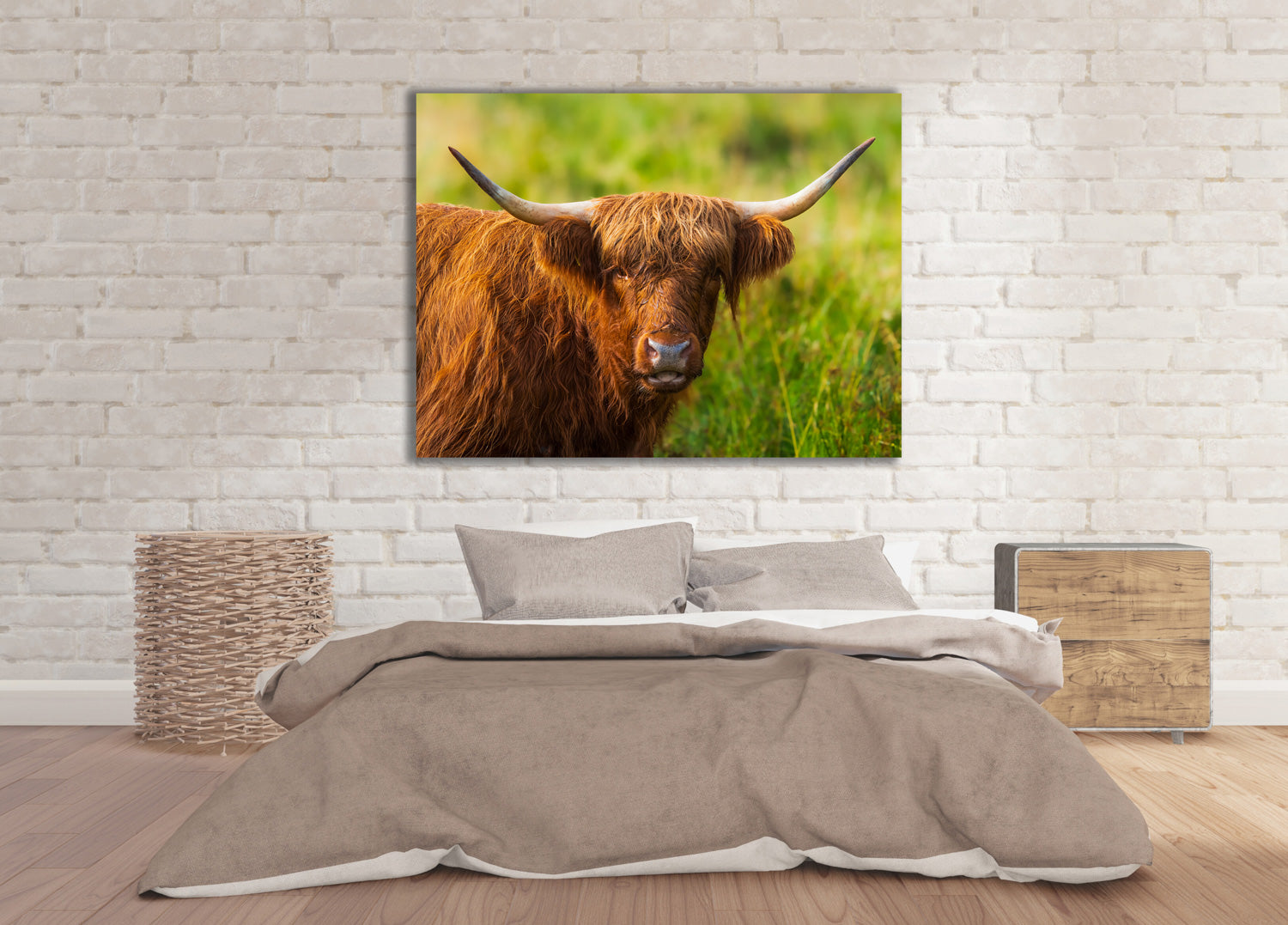 The fine, smoothly woven fabric has a subtly textured, glossy surface. The fabric texture gives the picture a natural and lively appearance. The woven fabric is stretched on a high-quality support frame.