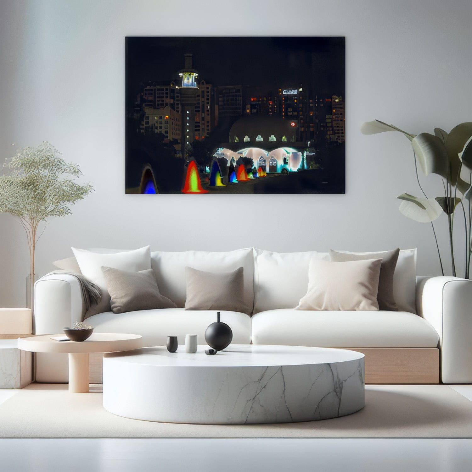 The image is printed on "Crystal Archive Professional Maxima" paper developed by Fujifilm and laminated onto a 3 mm thick Alu-Dibond backing board - consisting of two coated aluminum plates with a polyethylene core. Above this is a 2 mm thick acrylic glass. Acrylic glass is lightweight, shatterproof and insensitive to temperature fluctuations.