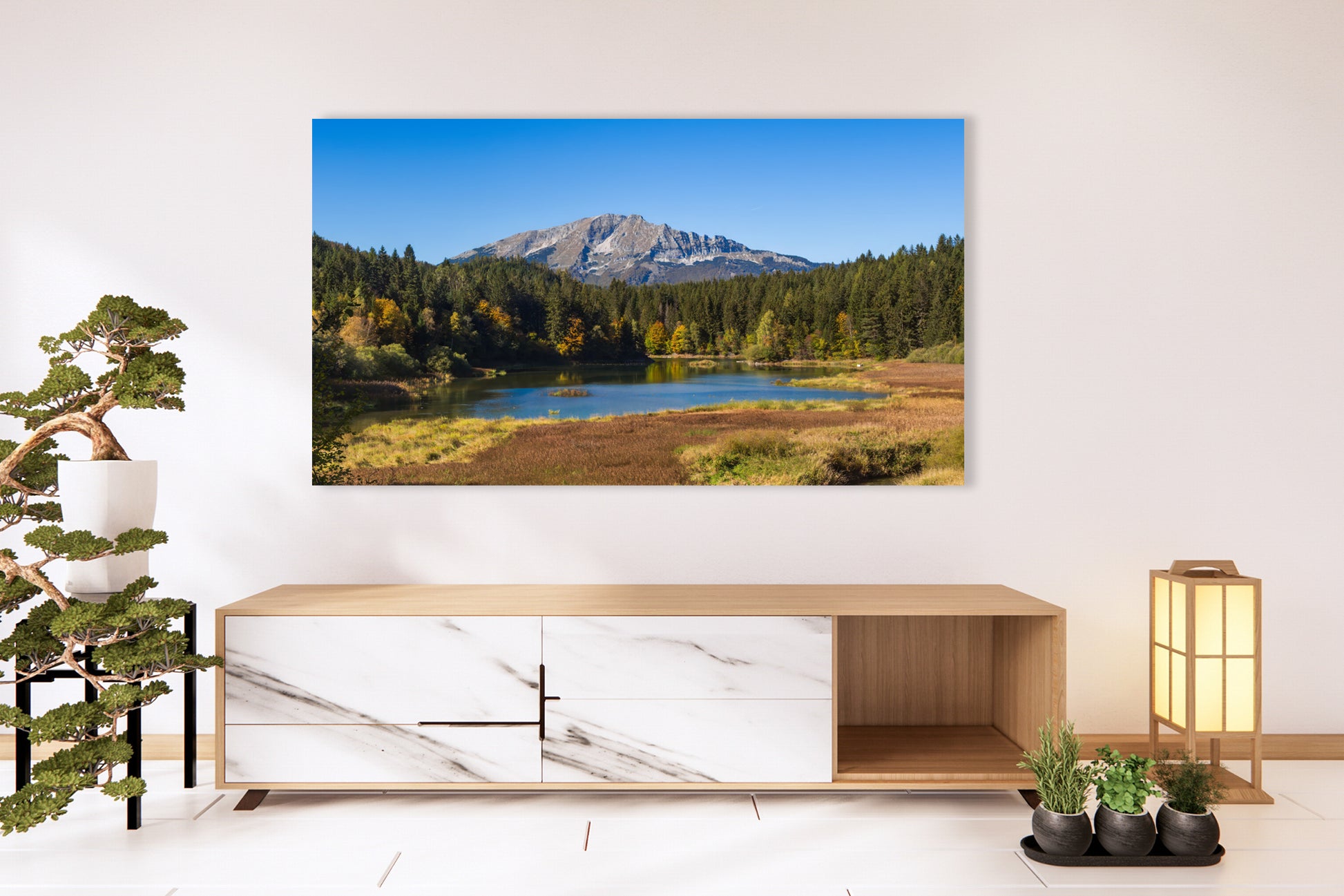 The fine, smoothly woven fabric has a subtly textured, glossy surface. The fabric texture gives the picture a natural and lively appearance. The woven fabric is stretched on a high-quality support frame.