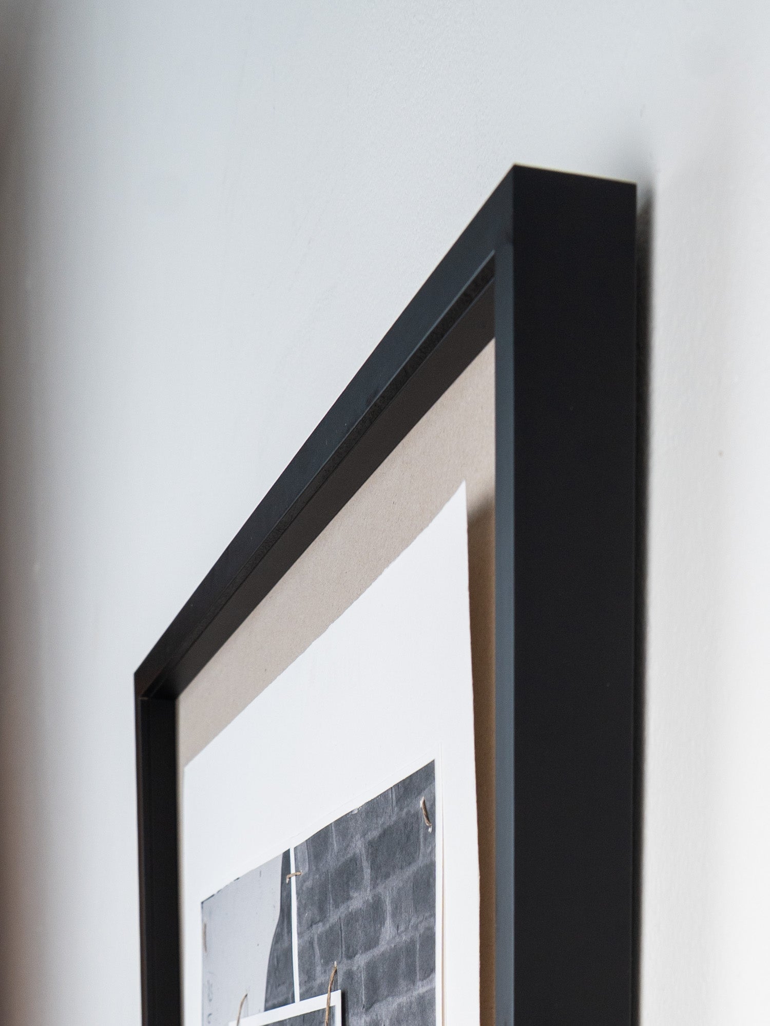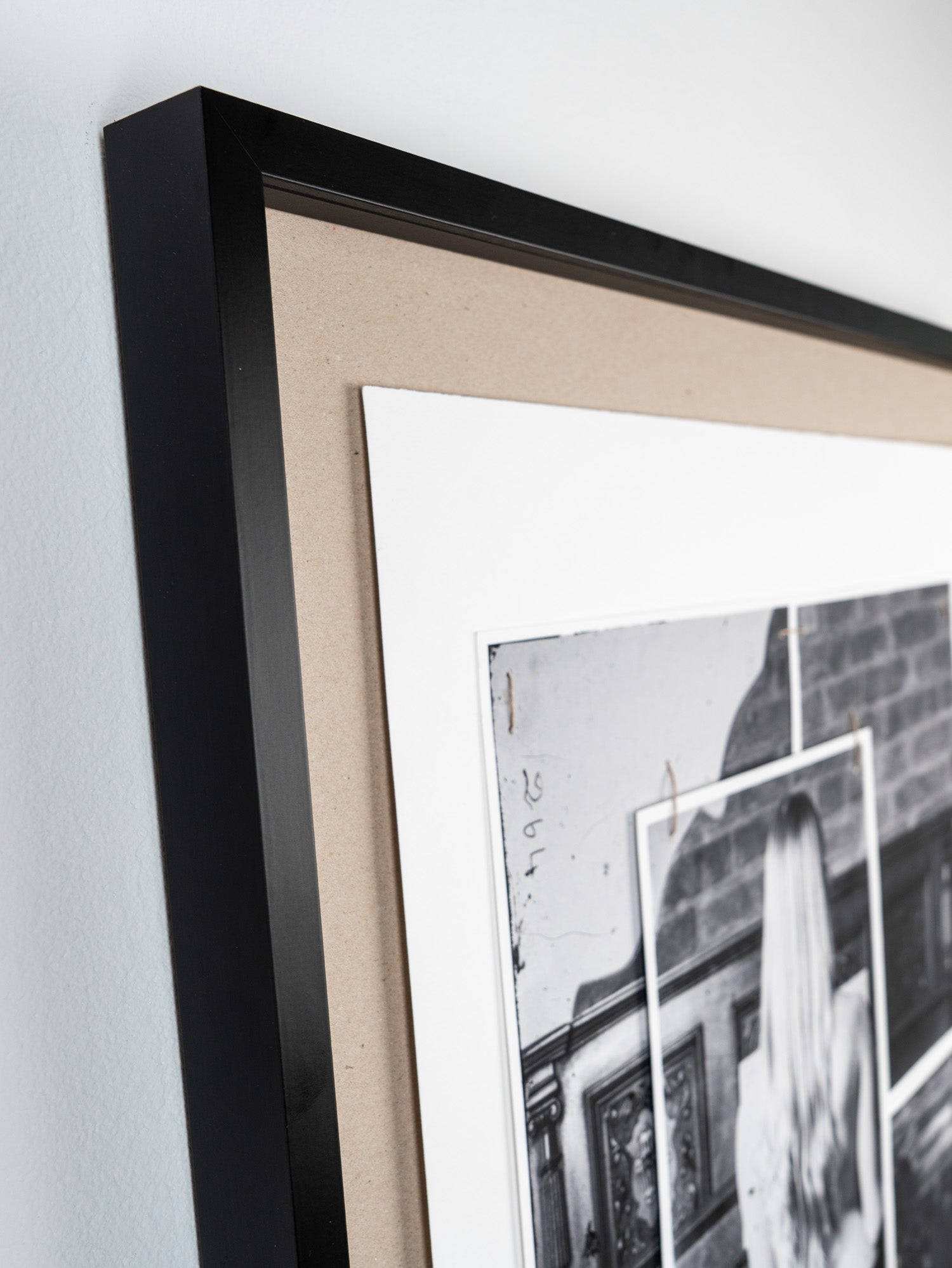 Framed in a black wooden object frame 62,5×82,5x4 cm behind museum glass,