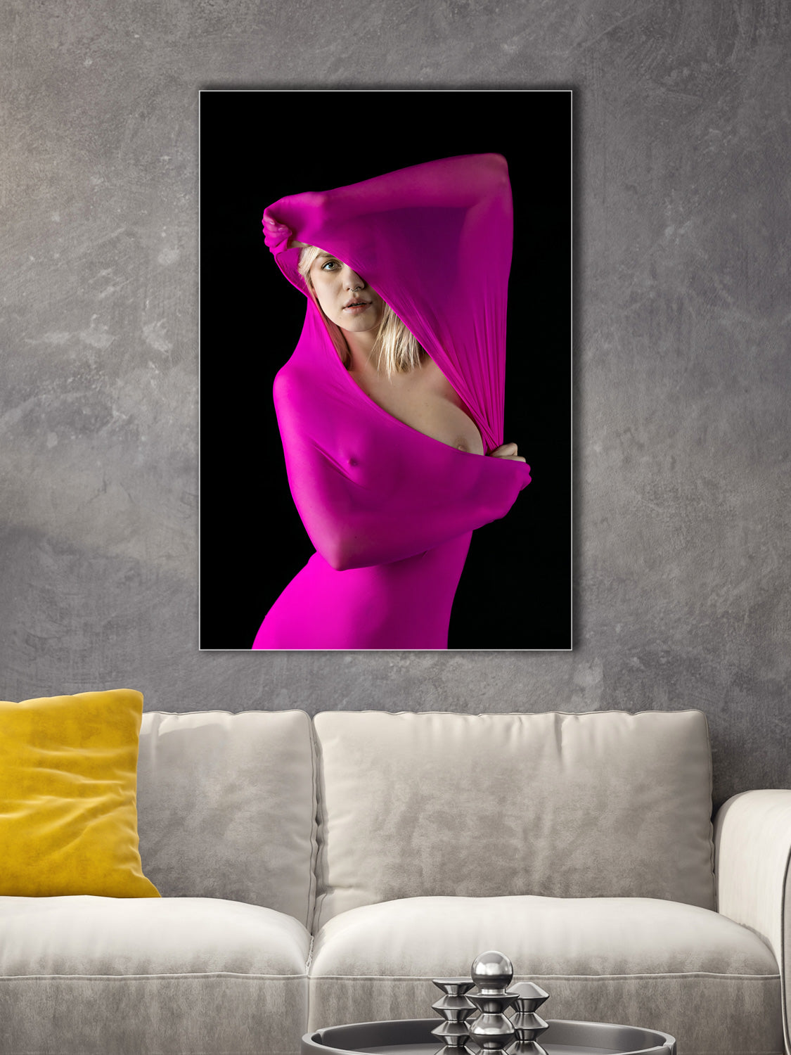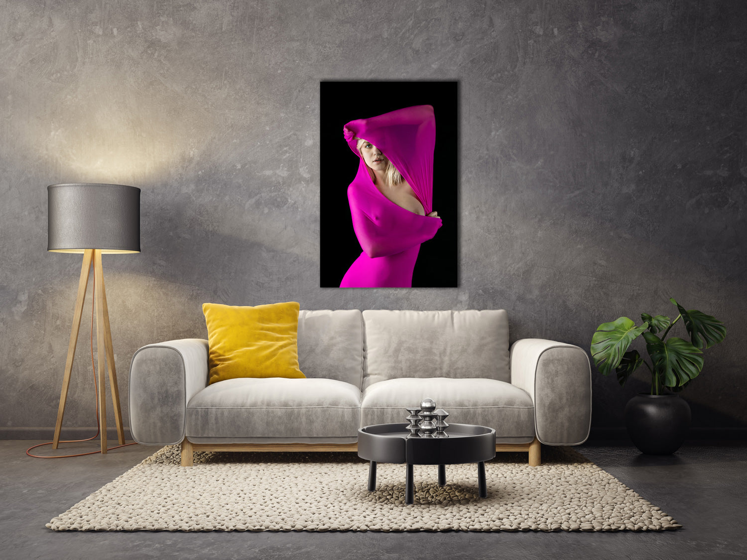 The fine, smoothly woven fabric has a subtly textured, glossy surface. The fabric texture gives the picture a natural and lively appearance. The woven fabric is stretched on a high-quality support frame.