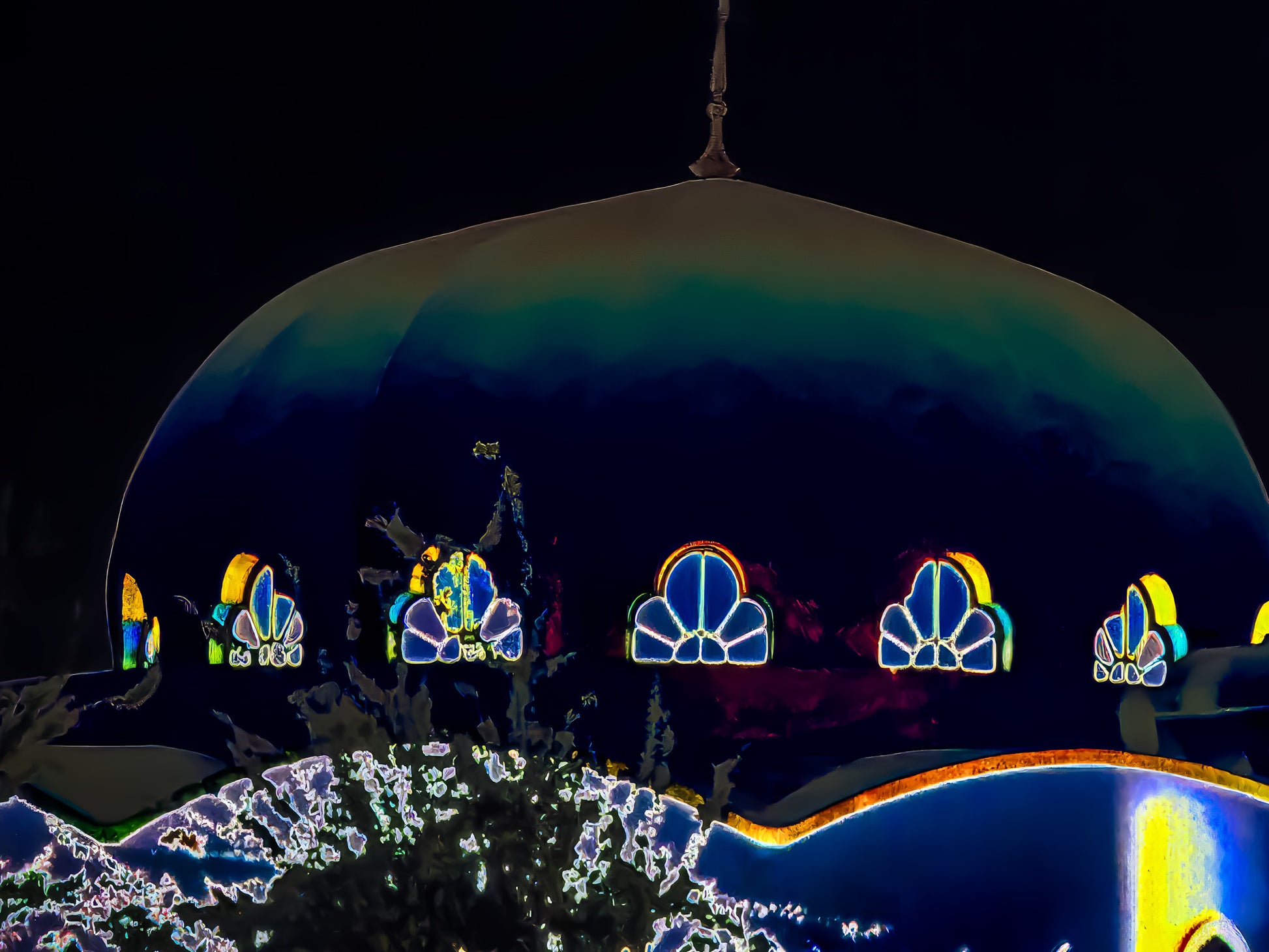 überhöhten Farben lassen die Fenster wie stille Lichter einer anderen Welt erscheinen. Ruhe,