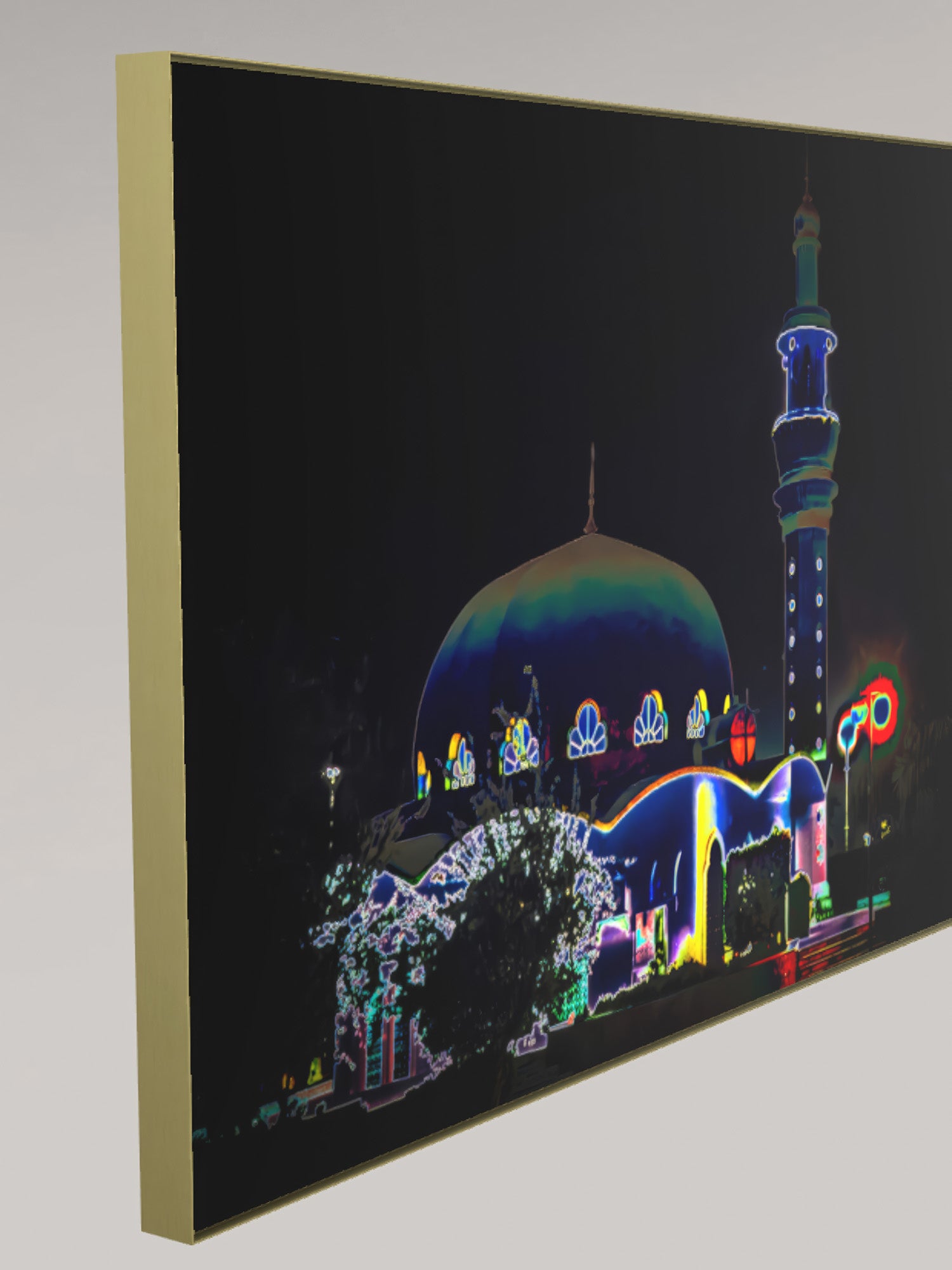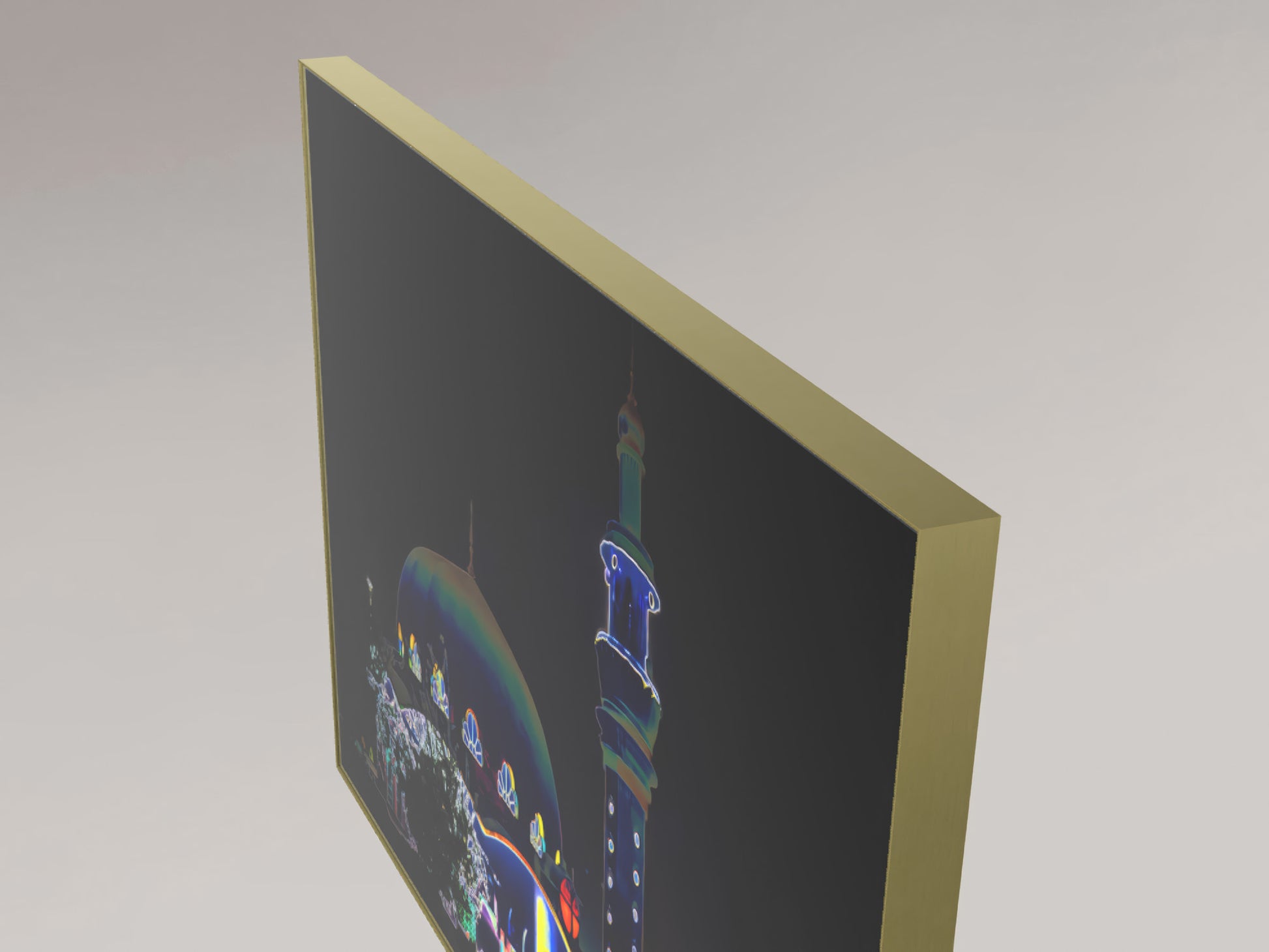 Hochwertiger Fotodruck auf 3mm Alu-Dibond. Die Rückseite ist mit einem Aluminium-Schienen System für eine einfache Wandmontage ausgestattet. 50 mm Schattenrahmen in der Farbe gold.