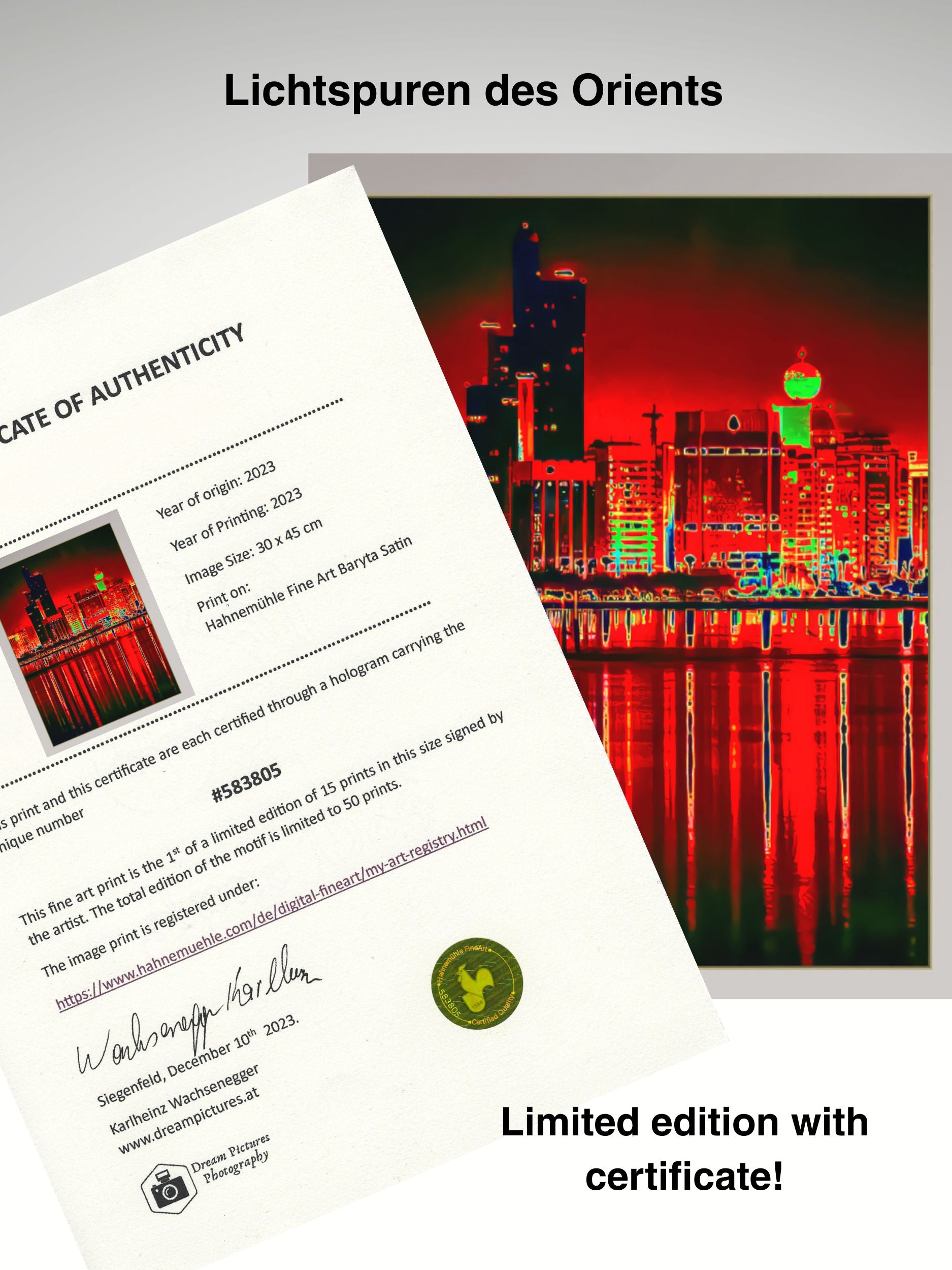 Auflage: 8 Exemplare pro Motiv + 2 Künstlerexemplare mit Zertifikat.