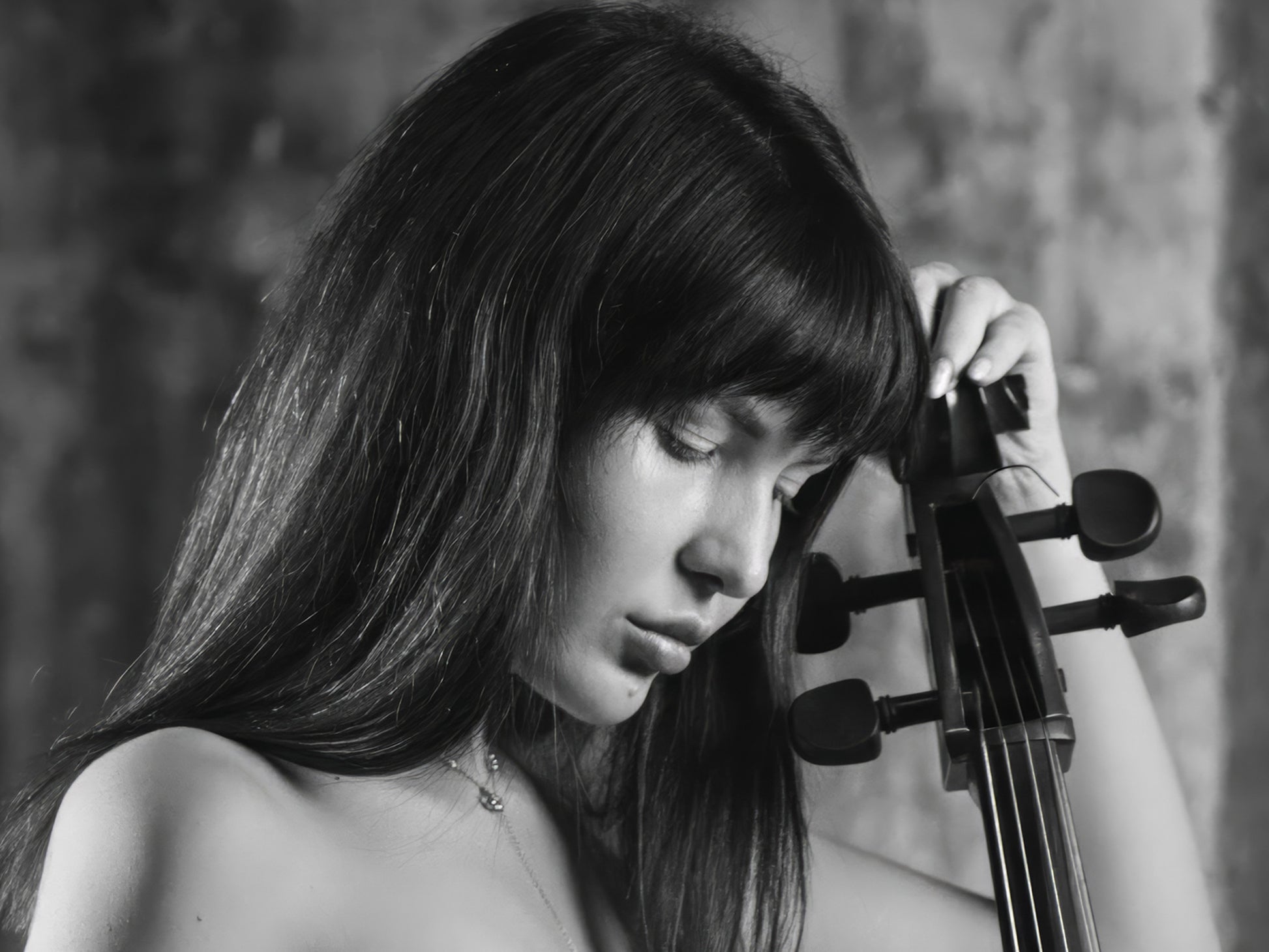 In „Chello Love #08“ konzentriert sich die Musikerin vollkommen auf ihr Spiel. Der Blick ist gesenkt, die Finger ruhen präzise auf dem Cello. Die Szene wirkt wie ein intimes Übungsritual, getragen von Stille und Hingabe.