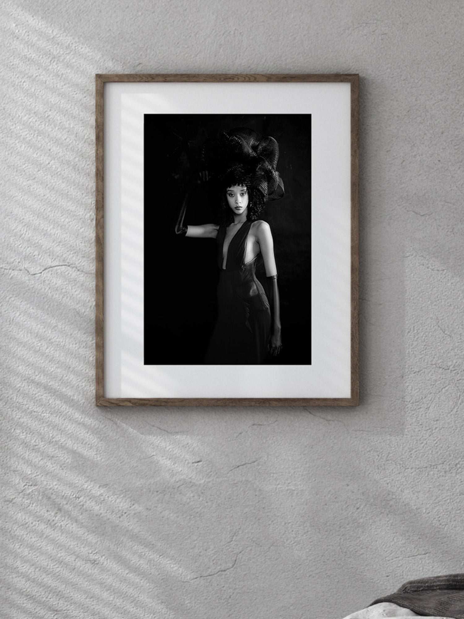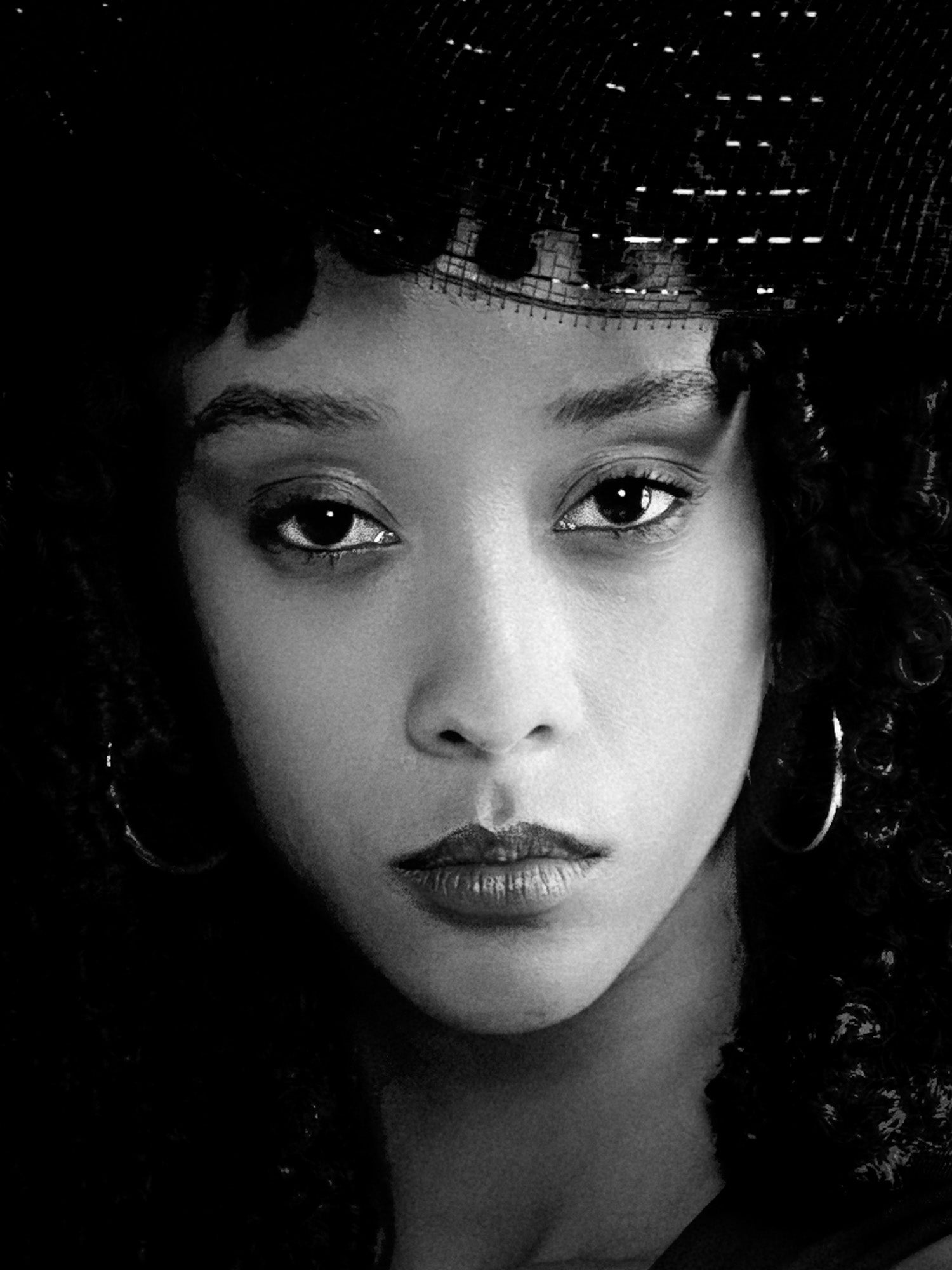 In „The Silent Empress – Crowned in Stillness #01“ tritt die ikonische Erscheinung in vollkommener Ruhe aus dem Dunkel hervor. Haltung und Blick sind gesammelt, beinahe unbeweglich, als würde sich Stärke aus innerer Stille speisen. Die markante Kopfbedeckung wirkt wie eine Krone der Zurückhaltung – ein Sinnbild stiller Würde. Licht und Schatten formen eine zeitlose Präsenz, in der Zerbrechlichkeit und Autorität in Balance stehen.