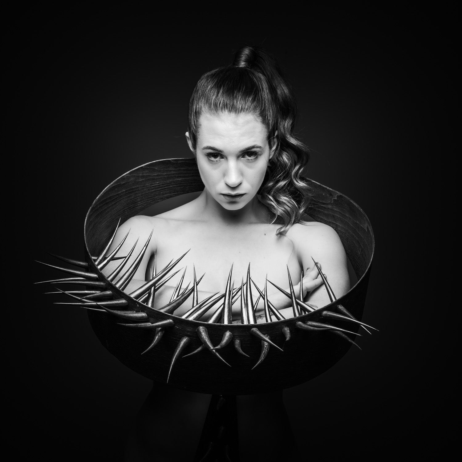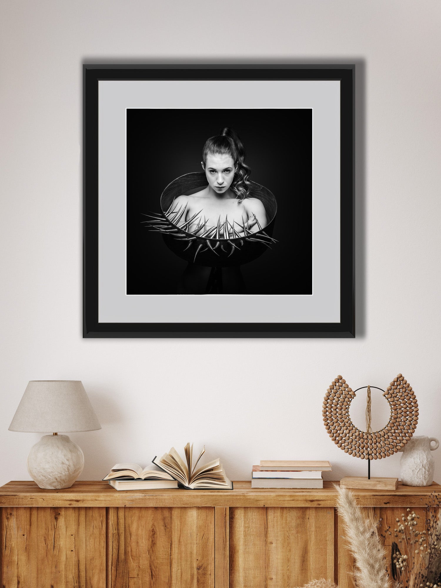 „Dornen unserer Zeit #01“ markiert den Beginn einer inneren Auseinandersetzung. Die Protagonistin steht am Übergang zwischen Offenheit und Schutz. Die Dornen erscheinen noch als notwendige Hülle – als erste Reaktion auf eine Welt, die Verletzlichkeit kaum zulässt. Es ist ein Moment des Innehaltens, bevor Widerstand Form annimmt.