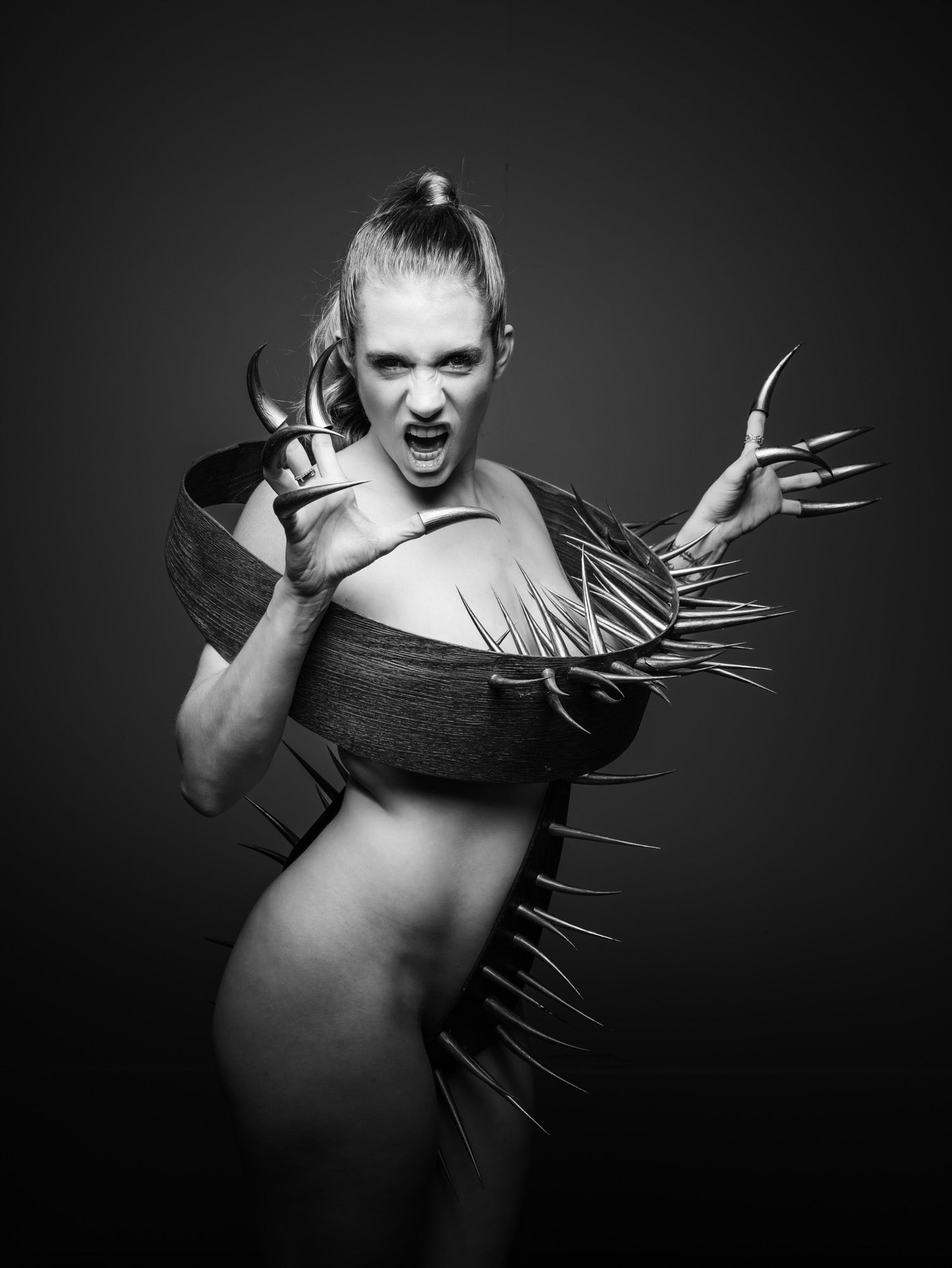 „Dornen unserer Zeit #05“ ist der emotionale Wendepunkt der Serie. Der innere Druck entlädt sich, Schutz wird zur Abwehr, Kontrolle zur rohen Reaktion. Dieses Bild steht für den Moment, in dem Widerstand nicht mehr leise bleibt – sondern Ausdruck findet.