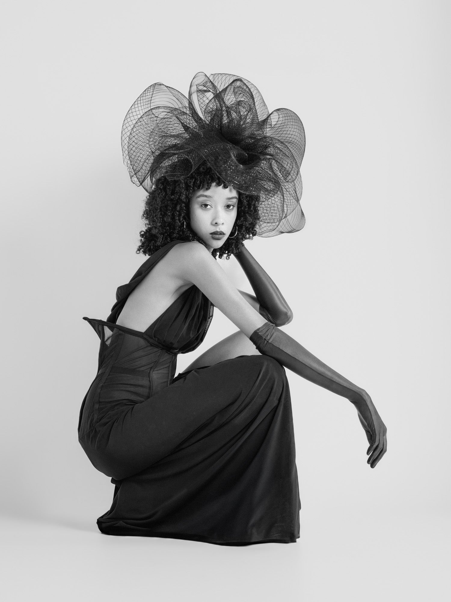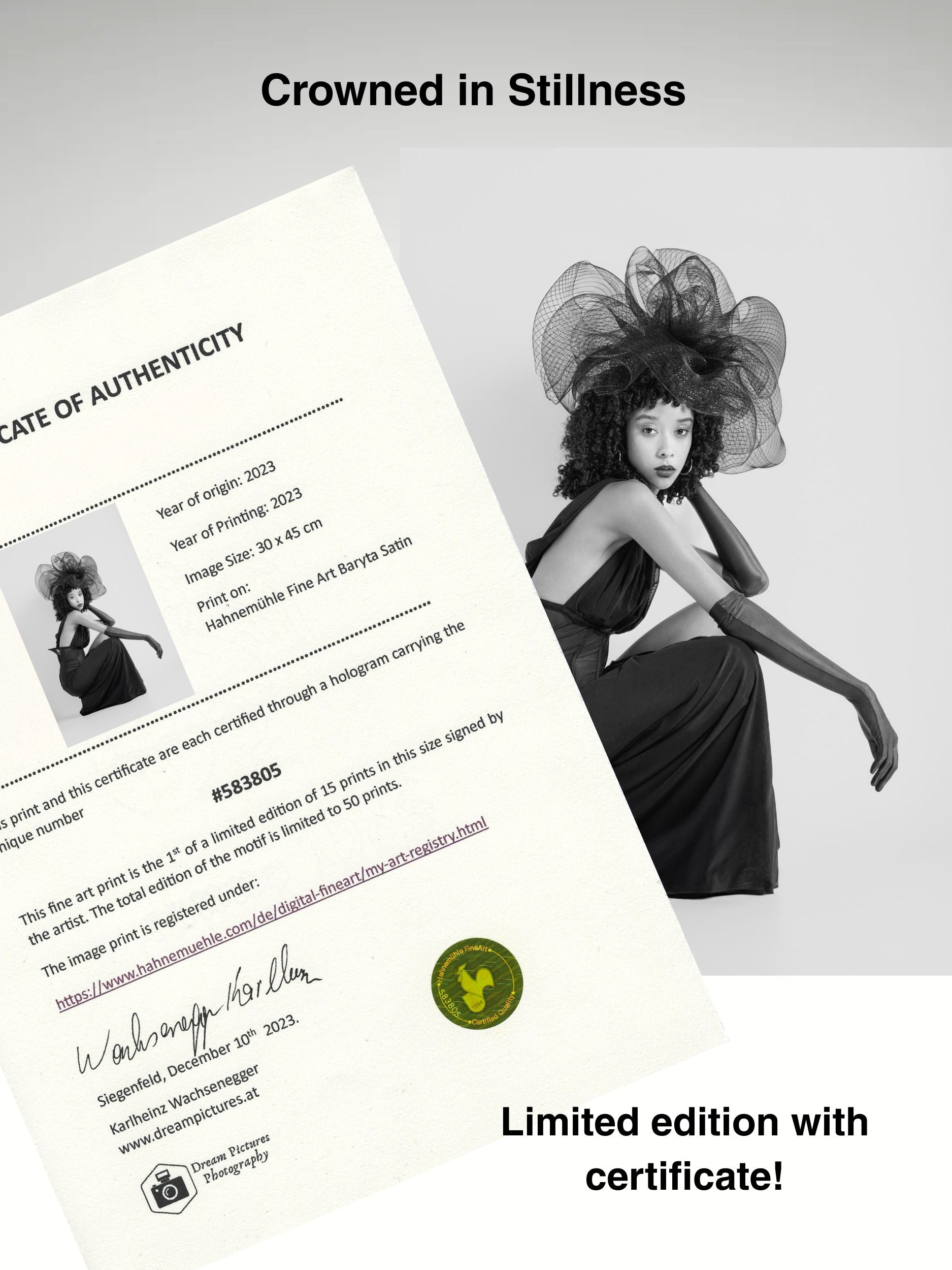 „The Silent Empress – Empress in Light #04“ öffnet den Raum und verleiht der dargestellten Gestalt eine beinahe schwebende Leichtigkeit. In einer ruhigen, fließenden Pose erscheint sie präsent und zugleich entrückt. Die Kopfbedeckung entfaltet sich wie ein Zeichen stiller Autorität. Die Helligkeit des Raumes unterstreicht die zeitlose Anmut einer Ikone, deren Stärke aus Ruhe erwächst.