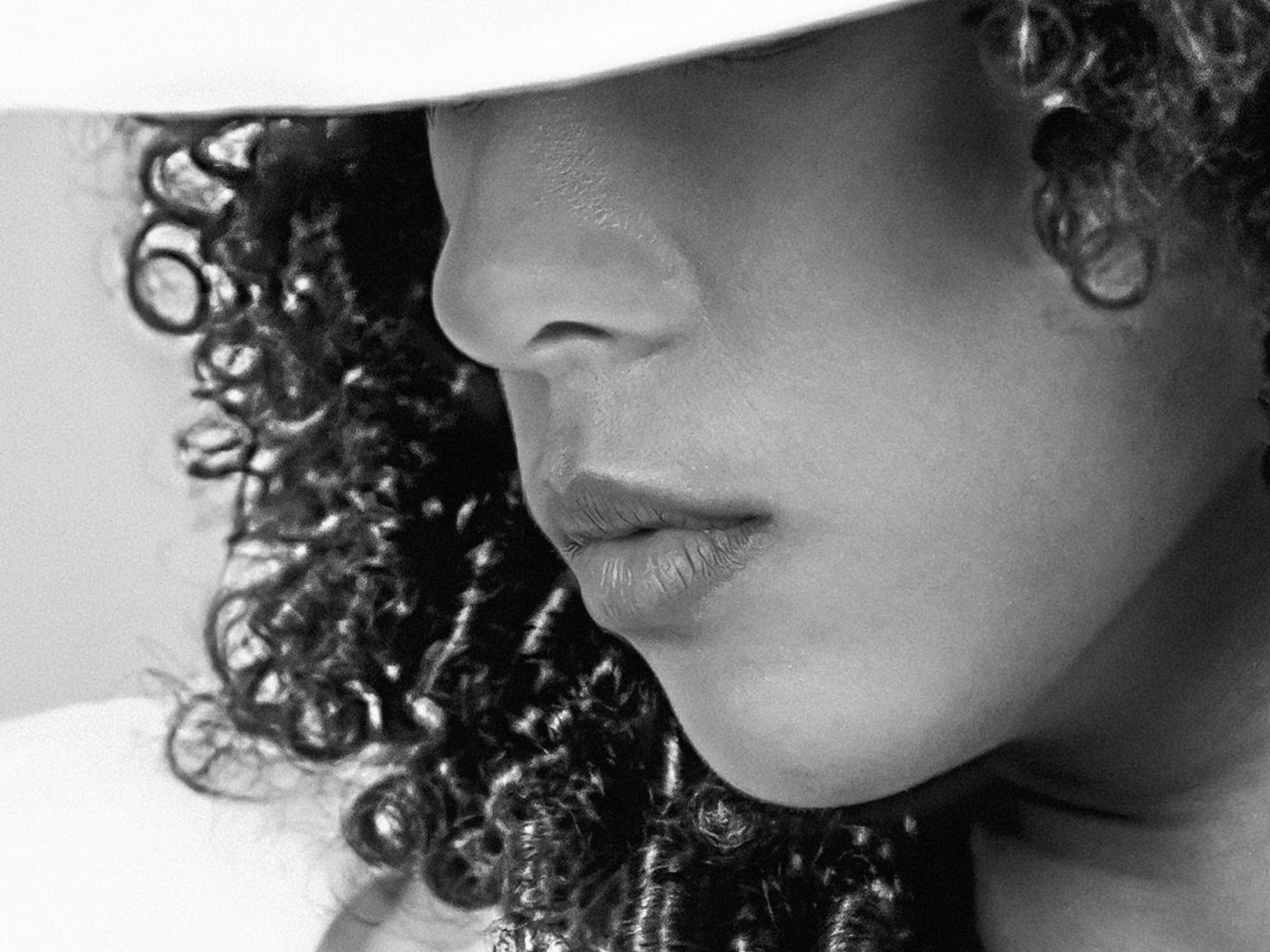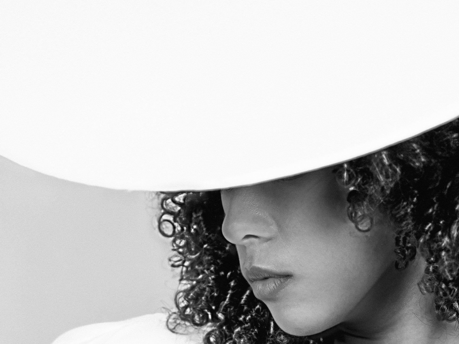 „Fragile Ikone #02“ zeigt die Erscheinung in sanfter Drehung, den Blick zur Seite gerichtet. Der flache Hut folgt der Bewegung des Kopfes und betont die Linie von Hals und Schulter. Die Aufnahme vermittelt Zurückhaltung und innere Sammlung – ein Moment zwischen Distanz und Nähe, in dem Würde aus der Ruhe heraus entsteht.