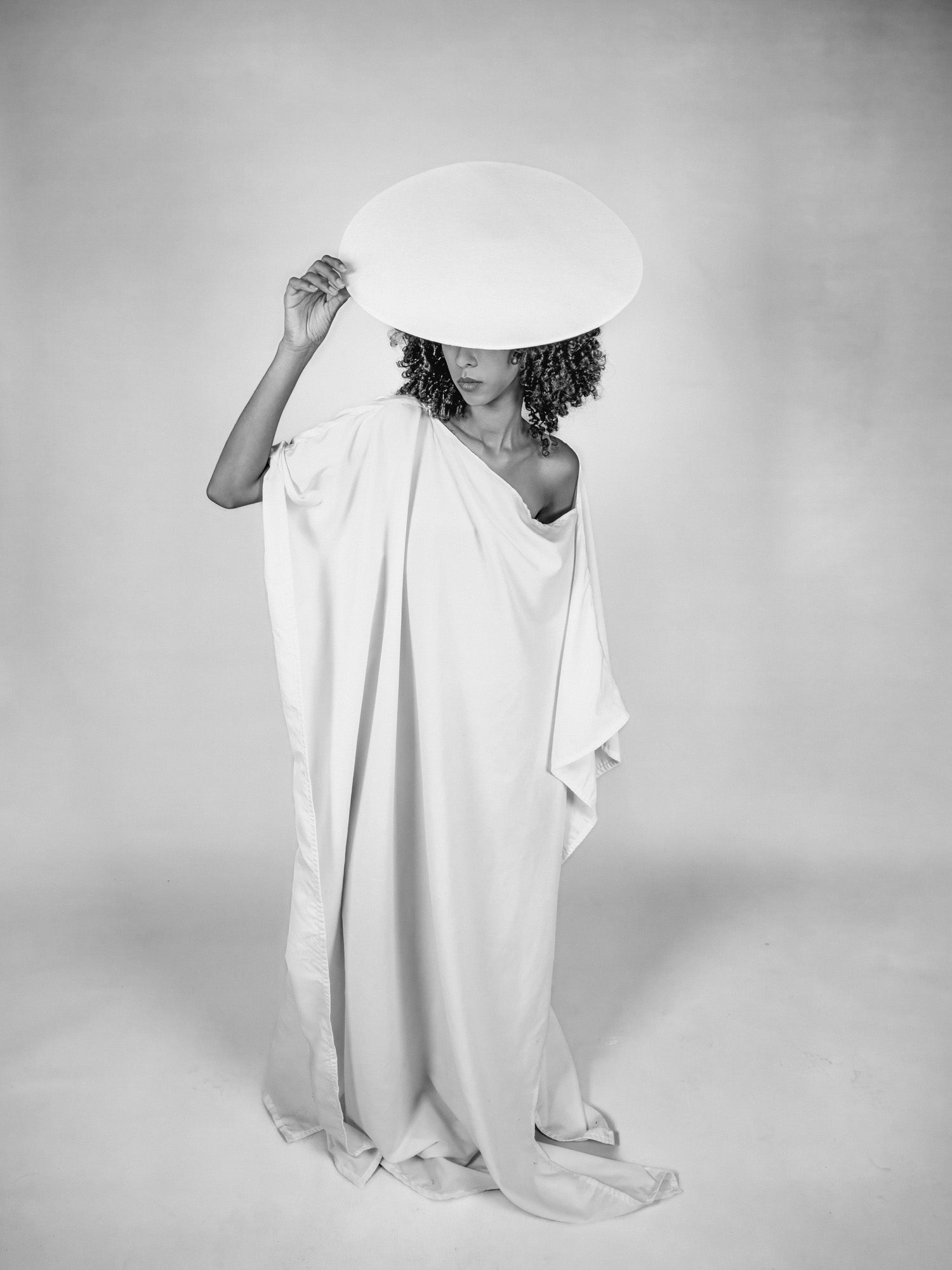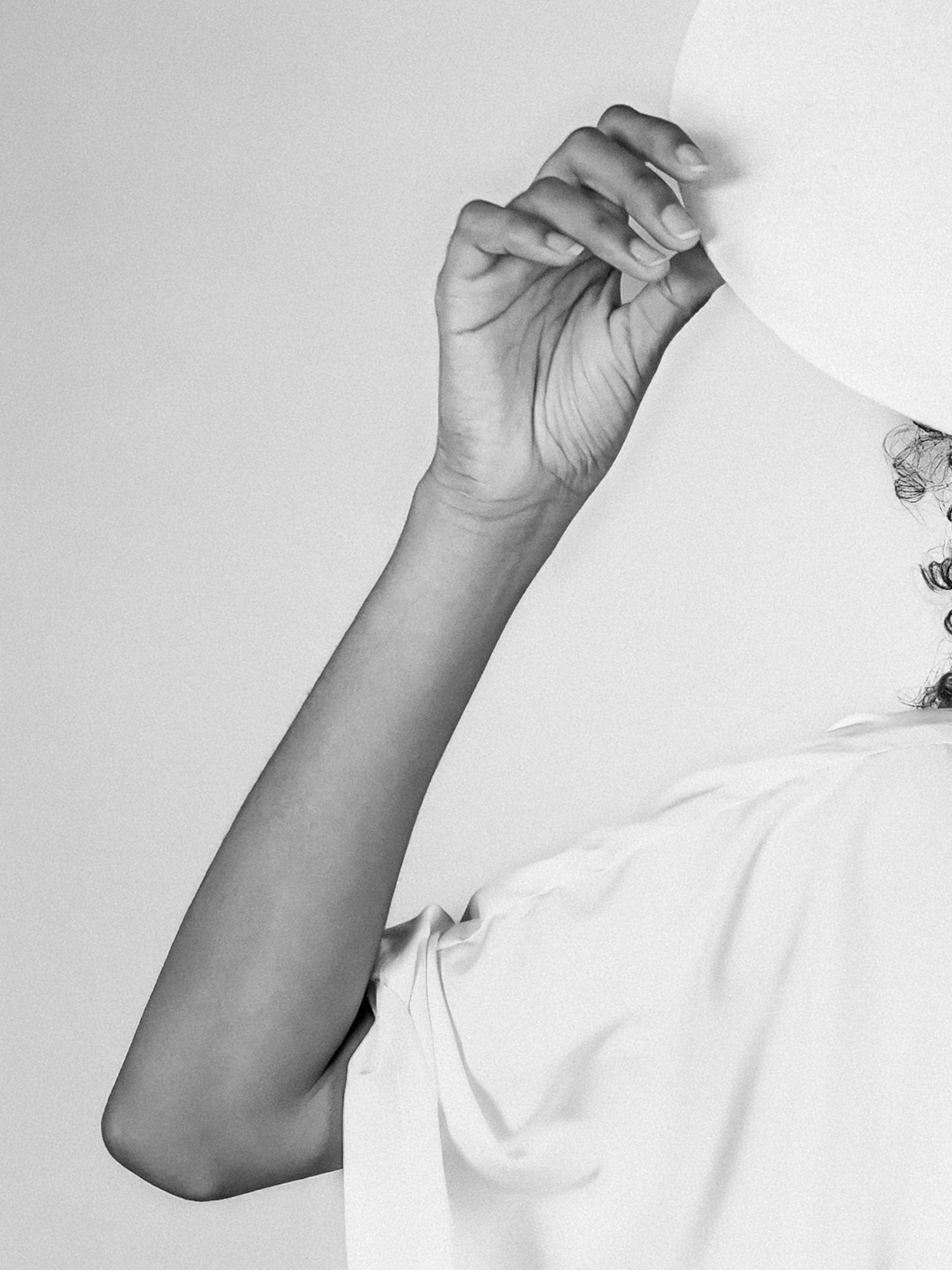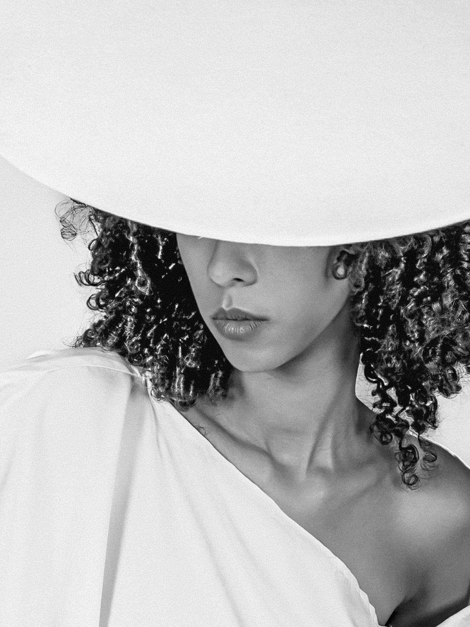„Fragile Ikone #06“ durchbricht die statische Strenge der Serie durch eine bewusste Geste. Die Protagonistin hebt den Hut leicht an und greift damit aktiv in die Bildordnung ein. Dieser Moment des Handelns verleiht der Ikone eine menschliche, beinahe fragende Note – zwischen Kontrolle, Bewegung und Zerbrechlichkeit.