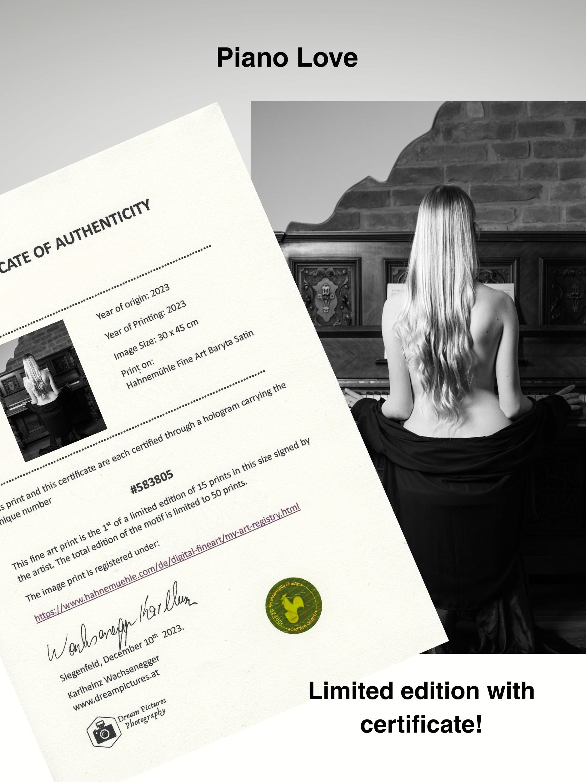 In „Piano Love #07“ verschmilzt Bewegung mit Emotion. Die Musikerin spielt versunken am Klavier, ihr Blick weich, die Haltung entspannt und zugleich voller Ausdruck. Die zarte Körperhaltung, das fallende Licht und die feinen Schatten schaffen ein Gefühl von Intimität – als lauschte man einer inneren Melodie.